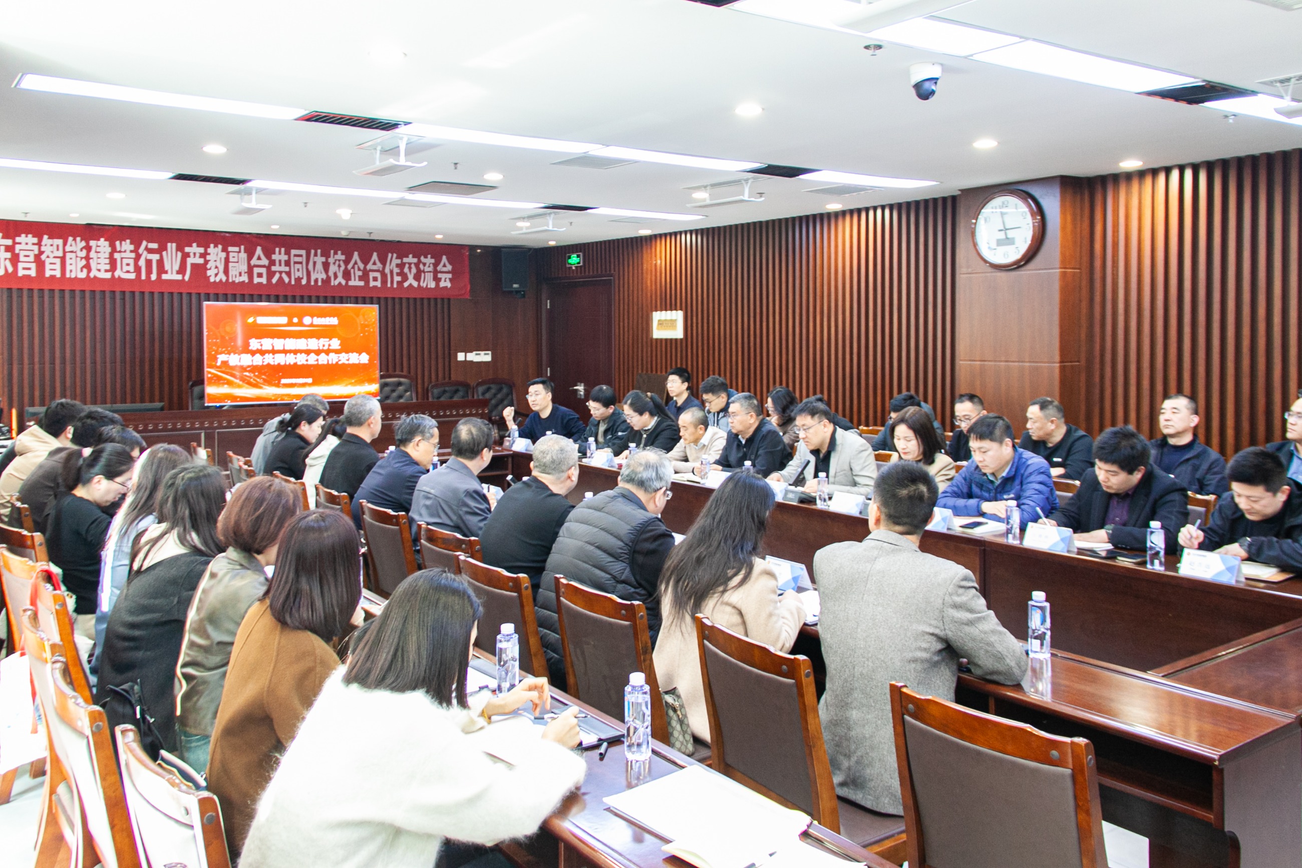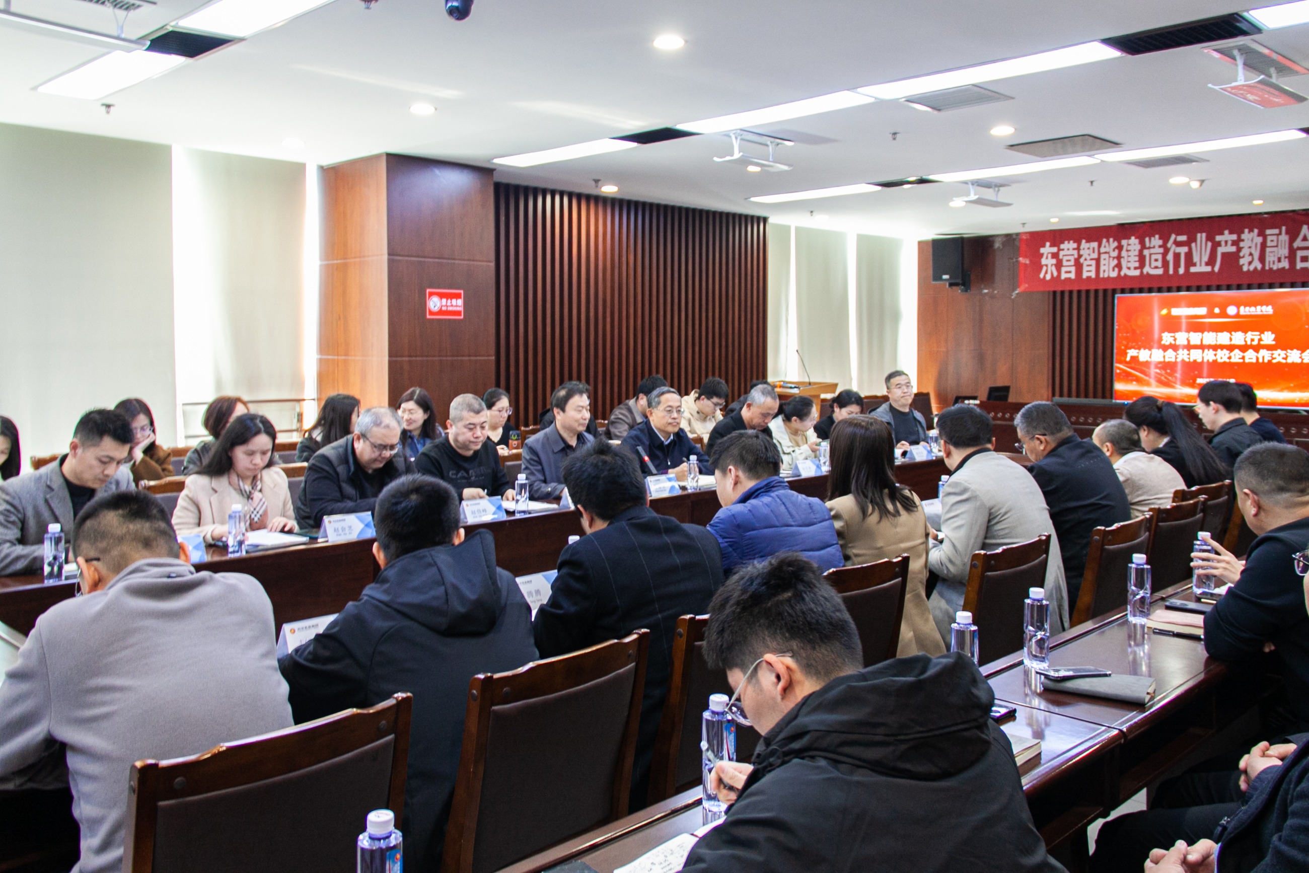 為推動產(chǎn)學(xué)研協(xié)同創(chuàng)新,促進(jìn)校企多維度深度融合,實現(xiàn)合作共贏的良好局面,3月31日,東營智能建造行業(yè)產(chǎn)教融合共同體校企合作交流會在天華實業(yè)集團(tuán)成功舉辦。東營職業(yè)學(xué)院智能建造工程學(xué)院副院長張傳寶、教務(wù)科長王棟,帶領(lǐng)學(xué)院教研室主任、專業(yè)負(fù)責(zé)人及骨干教師一行20余人,天華實業(yè)集團(tuán)總經(jīng)理閆小亮,副總經(jīng)理徐帥菊、徐九增,安全總監(jiān)、工程部經(jīng)理商雷雷及相關(guān)部門管理人員參會。